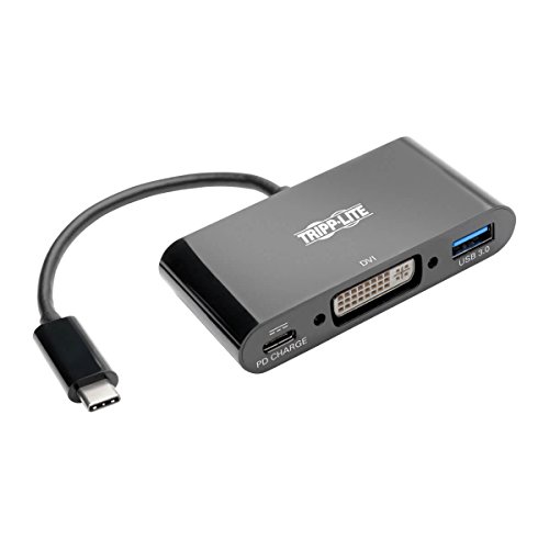 Customer reviews Tripp Lite USB C to DVI Adapter Converter w/ USB-A Hub & PD Charging USB Type C Thunderbolt 3, USB-C 1080p Black(U444-06N-DUB-C)